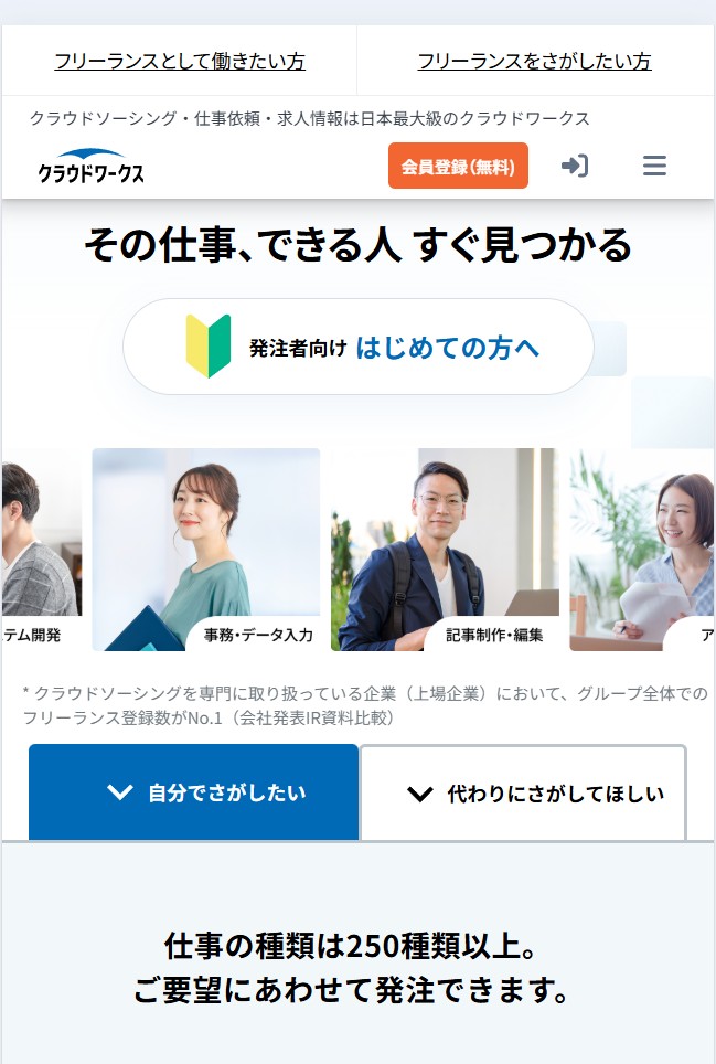 また、報酬の仮払いなど取引を進めやすい仕組みがあり、オンラインでのやり取りに不安がある方でも検討しやすい環境が整っています。まずは小さな案件から実績を積みたい方にも向いています。