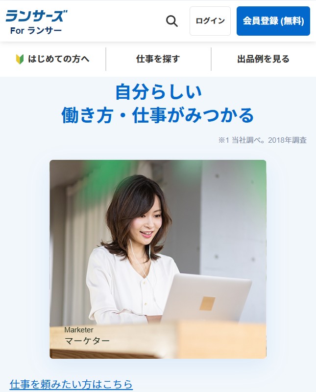 ランサーズは、在宅で完結する案件を探せるクラウドソーシングサービスです。ライティングやデザインだけでなく、事務・マーケティングなど仕事の種類が幅広く、スキルに応じて取り組み方を選べます。